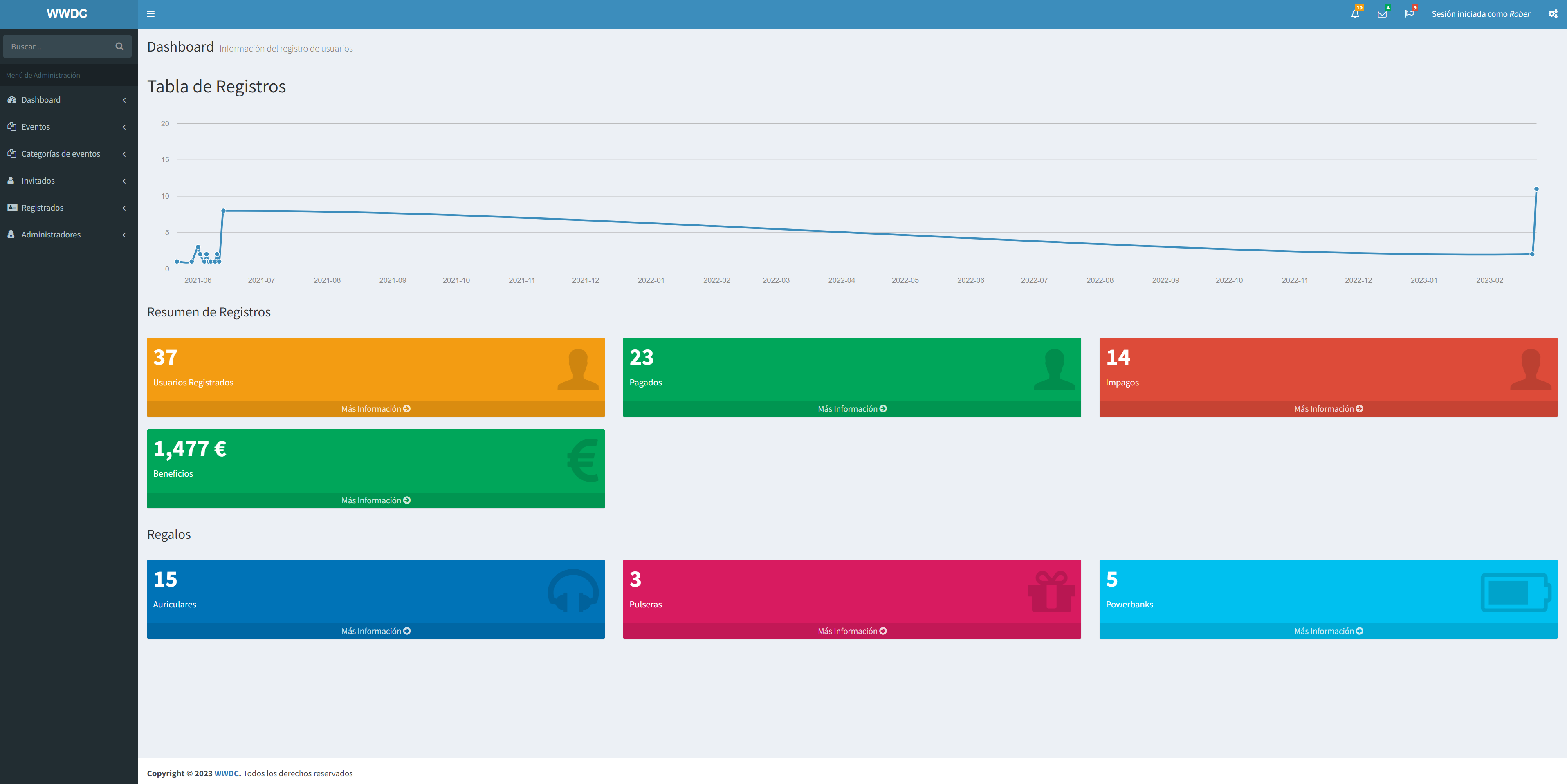 Al realizar una compra, cumplimentando los campos requeridos, se almacenará dicha información en la base de datos pudiendo consultar los registros gracias al módulo de Administración de Base de Datos implementado (AdminLTE).
